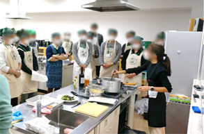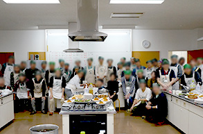 今年も昨年に続き、学校の調理室にて「お父さんの料理教室」を開催し、40名のお父さんにご参加いただきました。